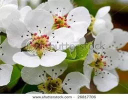 梨多数品种先开花后展叶,少数品种花叶同展或先叶后花。每一花序中有5-8朵花,外围花先于中心花开放。先开的花着果率高,果实发育决,质量好。洋梨的一些品种在夏季以及中国梨品种在秋季早期落叶的情况下,还有二次开花的现象。梨是异花授粉性很强的果树,同品种自花授粉时多不能结实或结实率极低。异品种授粉时则结实率常较高,其中鸭梨、太平梨、新世纪、菊水、二宫白等品种都是着果率很高的品种。着果过多时,果实变小,且易造成大小年结果的现象。但也存在着果率低的品种。