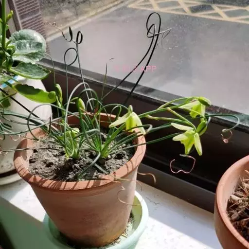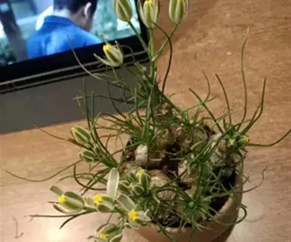 弹簧草形态独特,鳞茎古朴,其线条流畅飘逸,富于变化,花淡雅清新,适合用小盆栽种,点缀于窗台、几案等处,奇特而有趣。