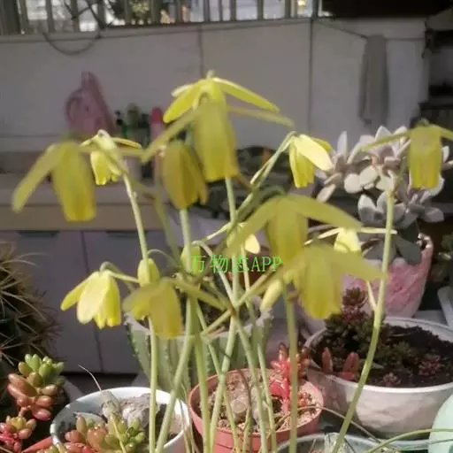 花梗极长,由叶丛中抽出,花芽黄绿色,总状花序,小花下垂,花瓣正面淡黄色,背面黄绿色,具淡雅芳香。花在阳光充足时开放,傍晚闭合,若遇阴雨天或光照不足,则不会开花,花期3-4月。