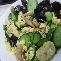 10. 炒勺烧热,放香油,待热时将打散的鸡蛋汁倒入锅中,摊成蛋饼,两面煎黄,盖在合菜上,即全部完成。