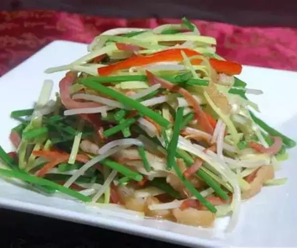 炒合菜,是北京市传统的特色名菜,属于京菜系。其是将韭黄、肉丝、粉丝、豆芽菜、嫩菠菜等一起炒制的一种菜肴。它在中国北方是一种十分讲究的菜品。它有2个特点:一是节令性强,立春日必不可少;二是吃“炒合菜”需要春饼卷食,方能品出味道。