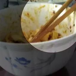 2. 水泡粉丝用刀略斩,不要过长;