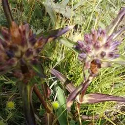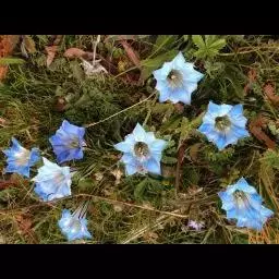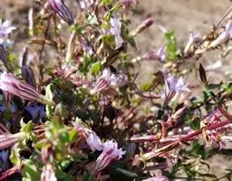 根呈细圆柱形,有多数须根,黄色,断面黄白色。茎具4纵棱,有分枝,节明显,节间长2-7cm,表面黄绿色或紫褐色;质脆,易折断,断面中空。叶多破碎,完整者展平后呈条形或条状披针形,先端尖,基部略抱茎,全缘,下面有一突起的脉纹,绿色。聚伞花序,花具花梗,长2-5cm,具4棱,萼片5,狭条形,先端尖,花冠淡蓝紫色,裂片5,长圆状椭圆形,具7条深色脉纹。蒴果条形,浅棕褐色,先端2裂。气微香,味苦。