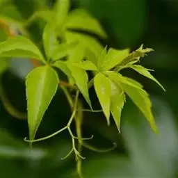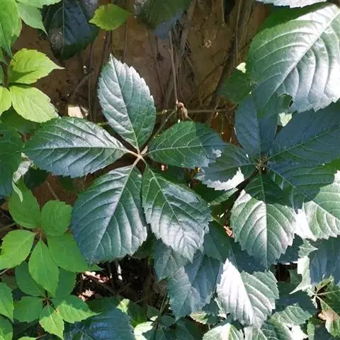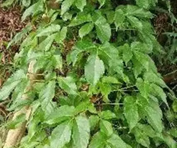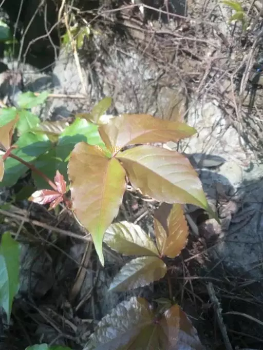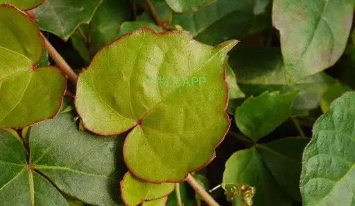 卷须总状5-8分枝,相隔2节间断与叶对生,卷须顶端嫩时膨大呈圆珠形,后遇附着物扩大呈吸盘状。两型叶,着生在短枝上常为3小叶,较小的单叶常着生在长枝上,叶为单叶者叶片卵圆形,长3-7厘米,宽2-5厘米,顶端急尖或渐尖,基部心形或微心形,边缘有4-5个细牙齿,3小叶者,中央小叶长椭圆形,长6-21厘米,宽3-8厘米,最宽处在近中部,顶端渐尖,基部楔形,边缘在中部以上有3-8个细牙齿,侧生小叶卵椭圆形,长5.5-19厘米,宽3-7. 5厘米,最宽处在下部,顶端渐尖,基部极不对称,近圆形,外侧边缘有5-8个细牙齿,内侧边缘锯齿状;单叶有基出脉3-5,中央脉有侧脉2-3对,3小叶者小叶有侧脉5-6对,网脉两面微突出,无毛;叶柄长5-20厘米,中央小叶有短柄,长0.3-1厘米,侧小叶无柄,完全无毛。