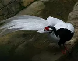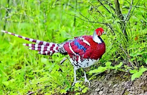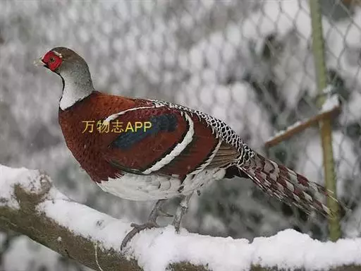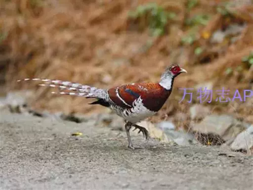 白颈长尾雉:大型鸡类,体长81厘米,体型大小和雉鸡相似。雄鸟头灰褐色,颈白色,脸鲜红色,其上后缘有…
