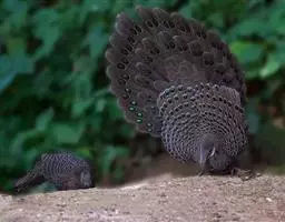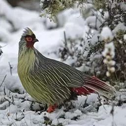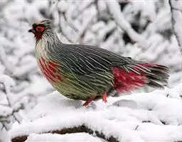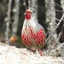血雉雉科血雉属鸟类,别名血鸡、松花鸡,血雉的雄鸟大覆羽、尾下覆羽、尾上覆羽、脚、头侧、腊膜为红色,…