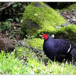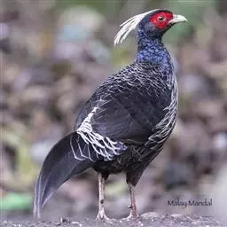 黑长尾雉大型鸡类,体长53~88厘米。雄较雌大。雄鸟通体紫蓝色,脸鲜红色,翅上有一条显著的白色翅斑…