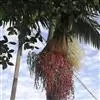 单干,树干短,肥似酒瓶,树高可达3米以上,胸径达38-60厘米。羽状复叶,叶长1.8-2.2米,小叶披针形,长约45厘米,宽3.8-5厘米,40-60对,中脉和侧脉凸起。叶柄长30-45厘米,淡红色,没有黄色的条纹。呈弓形后弯,叶鞘圆筒形。小苗时叶柄及叶面均带淡红褐色。雌雄同株,花柄长60厘米,佛焰苞柔软,长60厘米。果长3厘米,宽2.5厘米,表面粗糙,形状不规则,种子小而扁平。呈球状,长约1.3厘米。