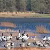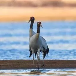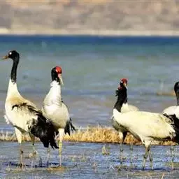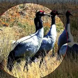 黑颈鹤:是鹤科、鹤属的大型涉禽,体长110-120厘米,体重4-6千克。颈、脚甚长,通体羽毛灰白色,…