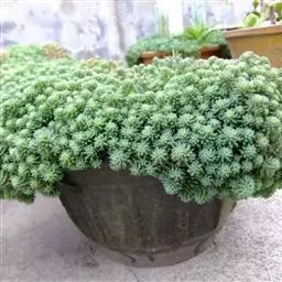 薄雪万年草别名矶小松,景天科景天属多年生草本植物,其细小的蓝绿色棒状叶片环绕生长于茎端,…