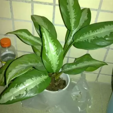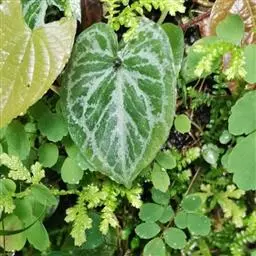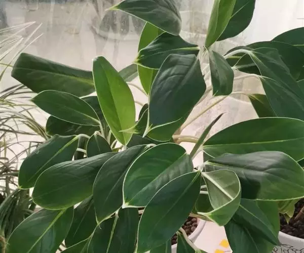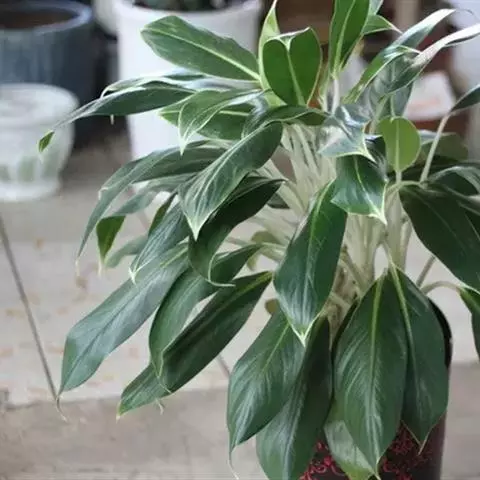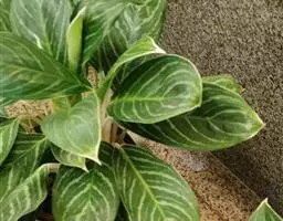 天南星科,原产于热带亚洲。多年生草本观叶植物。原产于马来西亚。茎直立,不分枝。株高约30~50公分,叶披针形或长椭圆形,叶面随品种而变化,革质肉厚,常有不同的银色或白色斑镶嵌,成株能开花。植物株形不高,耐阴性强,四季常绿,为优良之室内观叶植物。中肋两边常不等大,叶色暗绿,并散生灰色、乳白色或黄色.