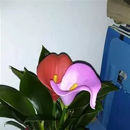 多年生常绿性草本植物,根系发达,具有地下根茎,可以萌芽生出分株来,叶为披针形长椭圆形或卵形,叶柄基部鞘状,中肋两边常不等大,植株多呈直立性,叶面上沿叶脉两边分布彩色斑纹,叶脉淡红色,叶色浓绿,雌雄同株异花,单性花,佛焰花序,佛焰苞淡绿。