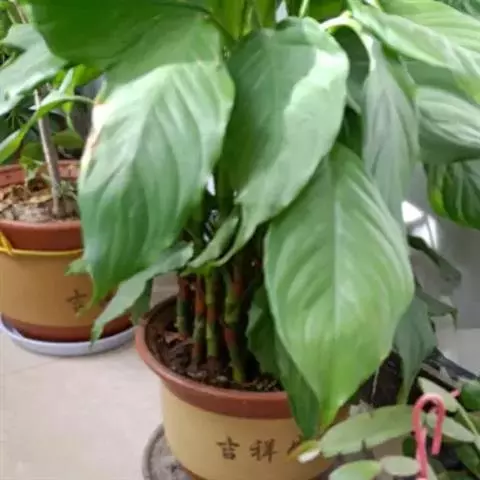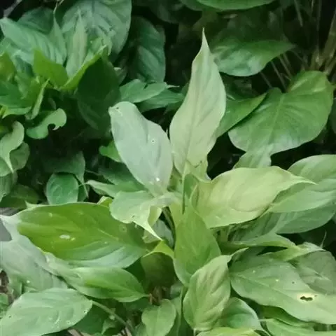 粗肋草学名:Aglanonema spp. 别名:广东万年青、万年青 性状描述:多年生草本;茎直立,不分枝;叶形多变,从披针形、长椭圆形乃至卵形,中肋两边。