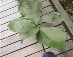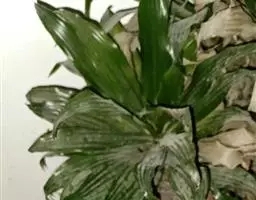 主要发生在叶片上,严重时可蔓延至叶柄上。病斑初期呈水浸状小黄斑,扩展后是椭圆形至不规则状的褐色或黄褐色,稍显轮纹状,后期病斑连成一片呈干枯状,并产生轮纹排列的小黑点。这种病主要是通风不好,有介壳虫危害时有利病害的发生。此病的方法是加强养护、增施磷、钾肥;发病初期可用1000倍百菌清防治,一星期一次防治,连续3-4次即可。