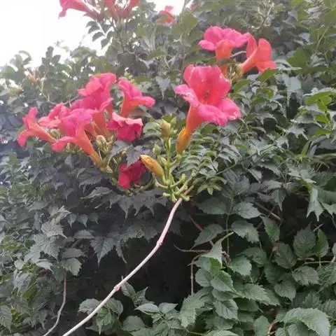 厚萼凌霄 Seem.)是紫葳科凌霄属植物,藤本,具气生根,长达10米。小叶9-11枚,…