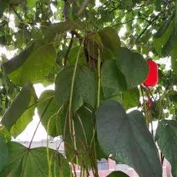 吊瓜树没有蹲苗现象,造林后第2个月每株追施复合肥100克,同时进行扩穴抚育。半年后高生长1.2米以上,地茎粗2.5厘米左右。吊瓜树速生,侧枝发达,主干往往呈弯弓形,要注意及时修枝,发现主干弯曲时要及时用木棍撑直或捆绑纠正。植后2年内每年追施复合肥2次,选在雨季的初期和中期进行,并及时砍除林地内的杂灌。3年树高达5-6米,胸径7-8厘米,冠幅3-4米,完全郁闭。吊瓜树十分耐旱,在国内各引种区干旱季节都能保持正常生长,没有休眠或半休眠的现象。