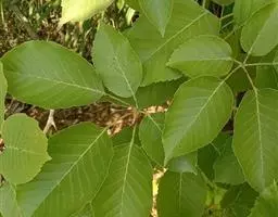 常绿乔木,高10-15米,枝下高约2米,胸径约1米。奇数羽状复叶交互对生或轮生,叶轴长7.5-15厘米;小叶7-9枚,长圆形或倒卵形,顶端急尖,基部楔形,全缘,叶面光滑,亮绿色,背面淡绿色,被微柔毛,近革质,羽状脉明显。
