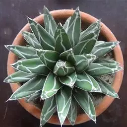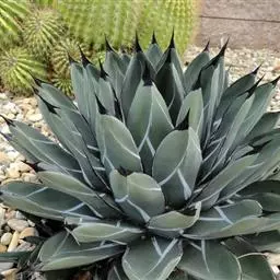 皇后龙舌兰是天门冬科、龙舌兰属多年生草本多浆植物。无主茎,叶丛生,莲座状,株幅40厘米。叶较多,…
