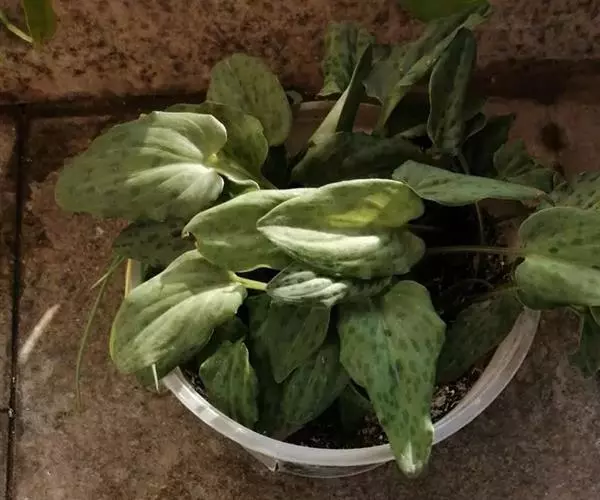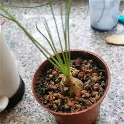 叶片浅绿,全部丛生,上面散布深色的斑点,是有趣的观叶植物。叶以上伸出高高的花葶,顶端挨挨挤挤是白色转绿色的小花;叶以下是翡翠色的膨大鳞茎。整个植物矮小紧凑,是招人喜欢的盆栽植物。