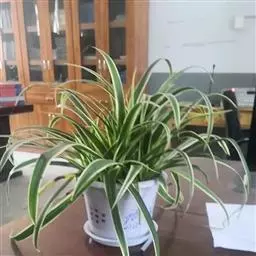 金边吊兰百合科、吊兰属植物。多年生常绿草本植物。叶片呈宽线形,嫩绿色,叶边缘金黄色,着生于短茎上,…