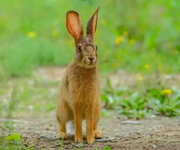 东北兔体形中等,体长400-480毫米。后肢较短。耳向前折达不到鼻端。尾短,略长于后足长之半。