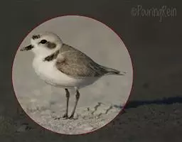 环颈鸻(学名:Charadrius alexandrinus):全长约16厘米。属中小型涉禽。羽毛的颜色为灰褐色,常随季节和年龄而变化。跗蹠修长,胫下部亦裸出。中趾最长,趾间具蹼或不具蹼,后趾形小或退化。翅形尖长,第1枚初级飞羽退化,形狭窄,甚短小;第2枚初级飞羽较第3枚长或者等长。三级飞羽特长。尾形短圆,尾羽12枚。