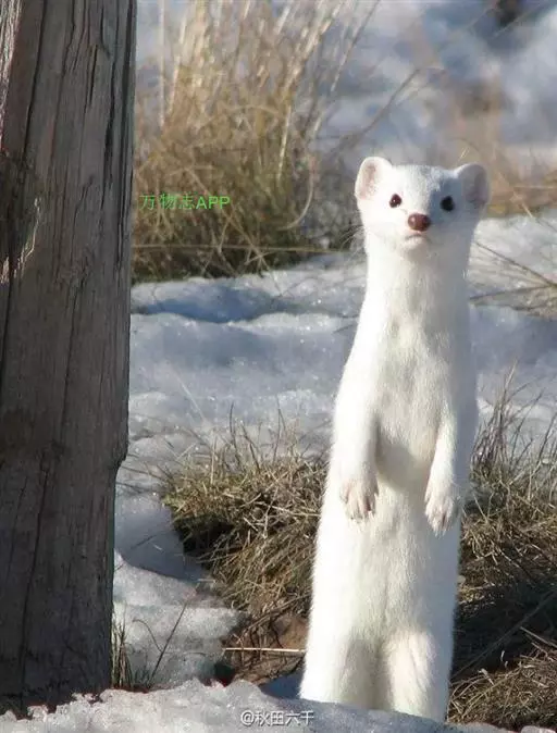白鼬(学名:Mustela erminea):共有37个亚种。体重25-116克,体长170-330毫米。体形似黄鼬,身体细长,四肢短小,毛色随季节不同,夏毛身体背面和腹面颜色不同,背面自吻端向后经颊部、颈侧、体侧至四肢腕部及尾的背面为灰棕色,足背为灰白色;腹面由下唇、颌部、喉部至腹部及四肢内侧为白色;足背为灰白色;尾下基部2/3同于腹色,近末端1/3段全黑色。冬毛全身均为纯白色,只有尾端为黑色。寿命5-8岁年。