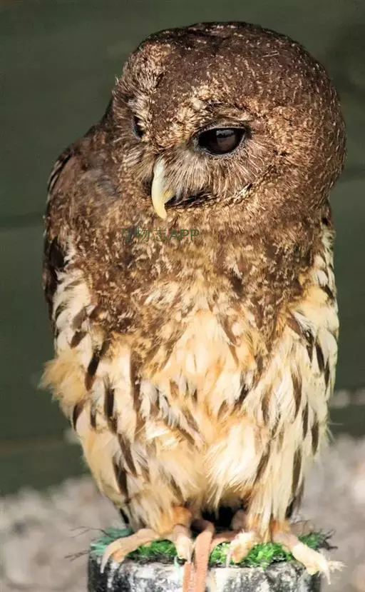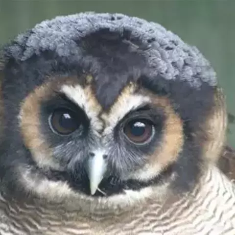 灰林鸮的虹膜暗褐色,嘴角褐色,先端腊黄色,爪角黄褐色(华南亚种)。