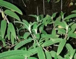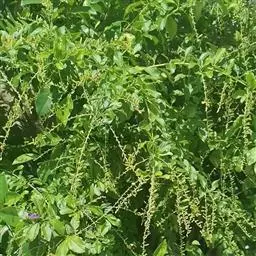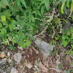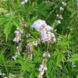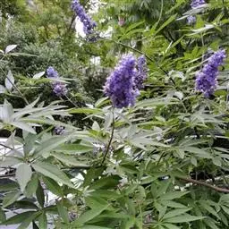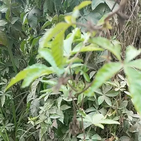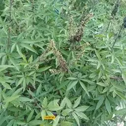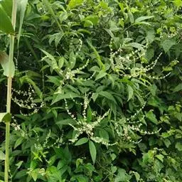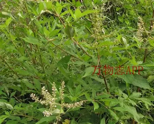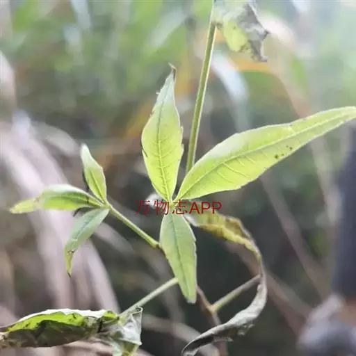 拟黄荆(Vitex negundoL.var.thyrsoidesPei),掌状复叶,小叶3-5;小叶片披针形或狭椭圆形,全缘,表面疏生柔毛或在脉上有毛,背面密生灰白色绒毛。圆锥花序由假聚伞花序组成,最末侧枝上的花常呈总状排列。花果期8-10月。