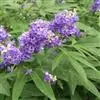 牡荆(Vitex negundoL.var.cannabifolia (Sieb.et Zucc.) Hand.-Mazz.),落叶灌木或小乔木;小枝四棱形。叶对生,掌状复叶,小叶5,少有3;小叶片披针形或椭圆状披针形,顶端渐尖,基部楔形,边缘有粗锯齿,表面绿色,背面淡绿色,通常被柔毛。圆锥花序顶生,长10-20厘米;花冠淡紫色。果实近球形,黑色。花期6-7月,果期8-11月。