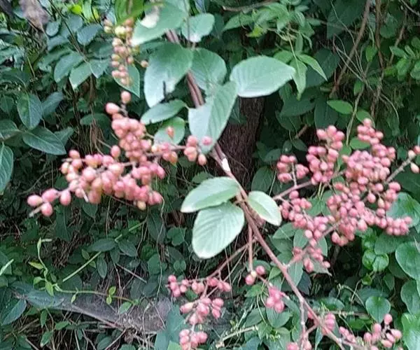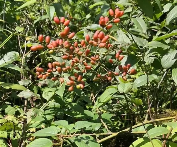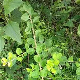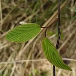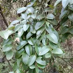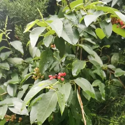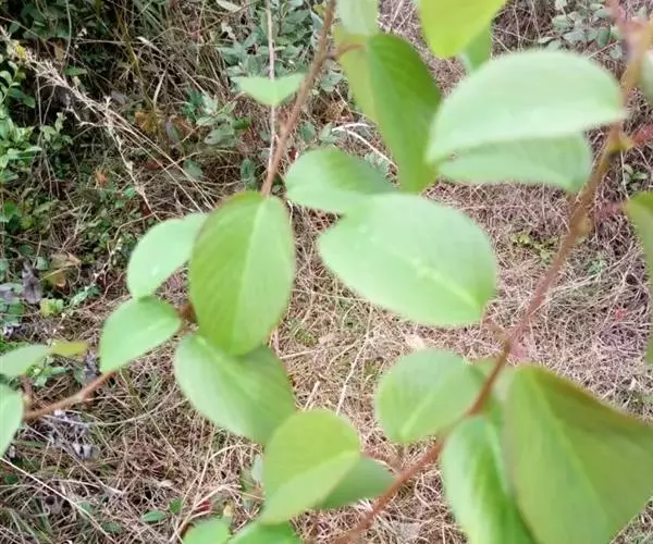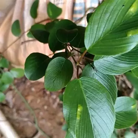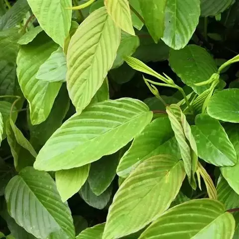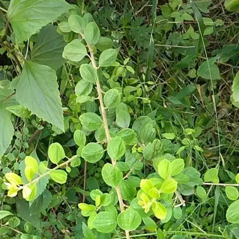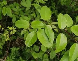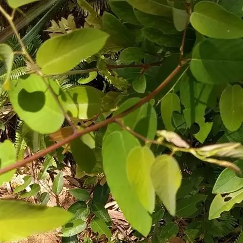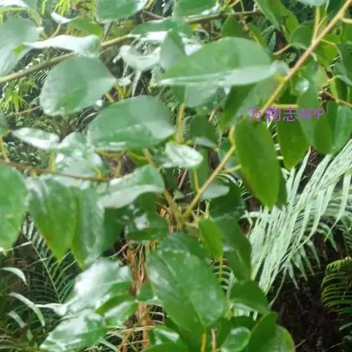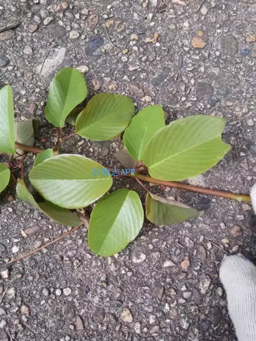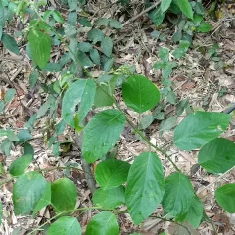 藤状或直立灌木;幼枝黄绿色,光滑无毛。叶纸质,上部叶较小,卵形或卵状椭圆形至与卵状披针形,长4-9厘米,宽2-5厘米,顶端锐尖,下部叶较大,椭圆形至矩圆形,长达11匣米,宽达6.5厘米,顶端钝或圆形,稀短渐尖,基部圆形,稀心形,上面绿色,无毛,下面干时栗色,无毛,或仅沿脉基部被疏短柔毛,侧脉每边9-12条,两面稍凸起;叶柄长1-2厘米,稀5.2厘米,无毛;托叶狭披针形,宿存。