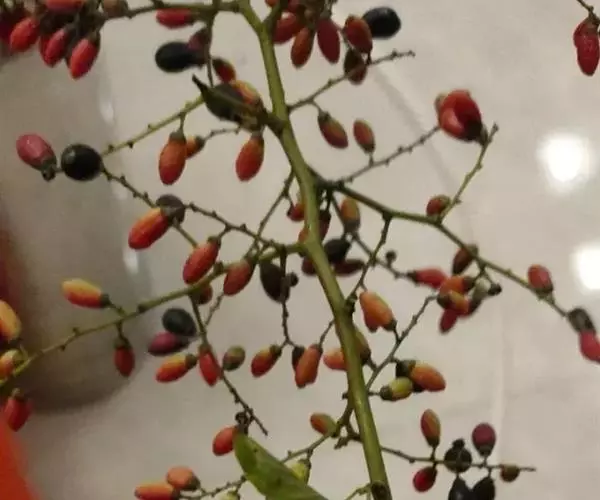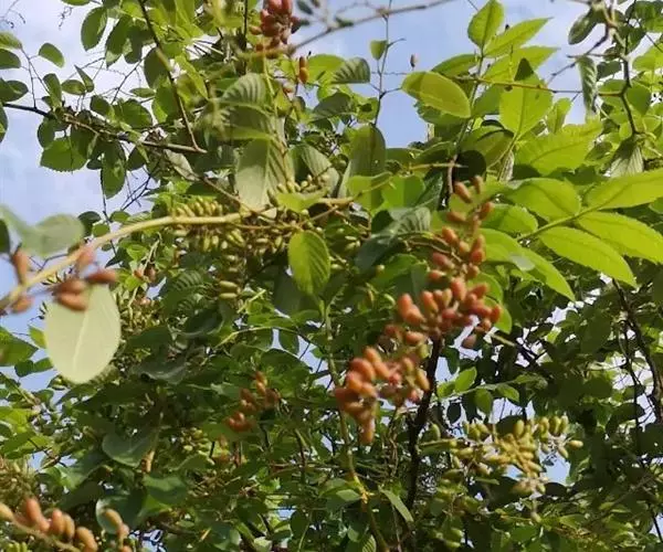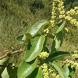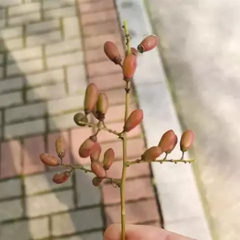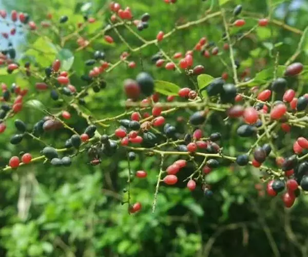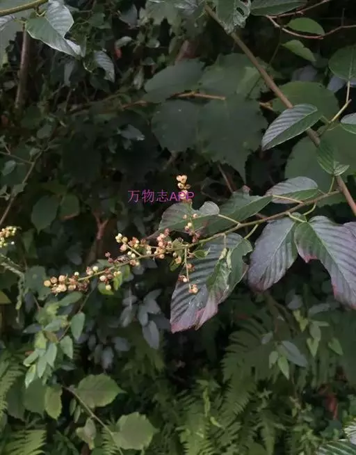 花多数,通常数个簇生排成顶生宽聚伞圆锥花序,或下部兼腋生聚伞总状花序,花序长可达15厘米,侧枝长在5厘米以下,花序轴无毛或被疏微毛;花芽卵球形,顶端急狭成锐尖或渐尖;花梗长1-2毫米;萼三角形,顶端尖;花瓣倒卵形,雄蕊与花瓣等长。核果圆柱状椭圆形,长7-10毫米,直径4-5毫米,有时顶端稍宽,基部有盘状的宿存花盘;果梗长2-3毫米,无毛。花期7-10月,果期翌时年4-7月。