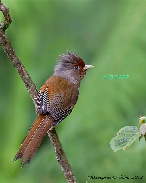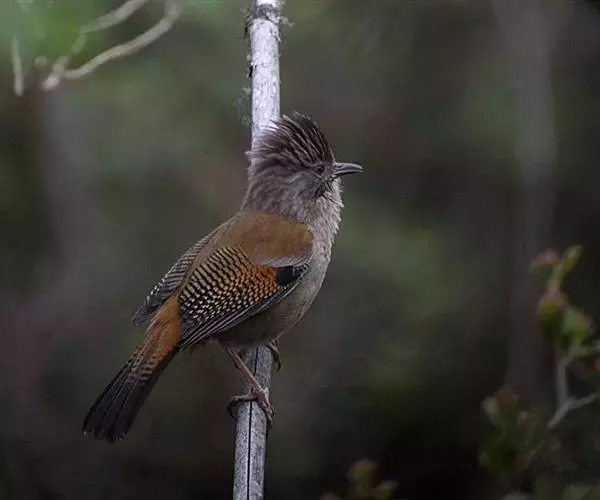 栗额斑翅鹛(学名:Actinodura egertoni)是噪眉科、斑翅鹛属中型鸟类,体长20-23厘米。头顶具浓密的羽冠,前额栗棕色,头顶灰褐色。上体棕褐色,两翅棕褐色具黑色横斑,翅基外缘有一黑斑,尾呈凸状,棕褐色具黑色横斑。下体棕褐色,腹中部白色。特征非常明显,野外不难识别。虹膜褐色、红褐色或橄榄黄色,嘴淡角褐色或铅褐色,下嘴乳黄色或褐黄色,脚淡褐色或灰褐色。