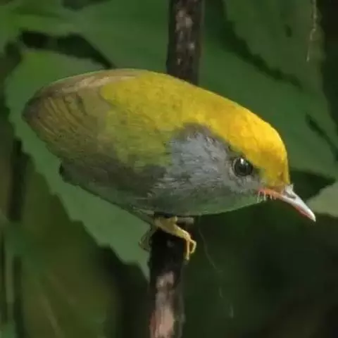 金冠地莺:形态与灰腹地莺相似,上体橄榄绿,前额至头顶渲染亮金黄色;下体几乎纯暗石板灰色,…