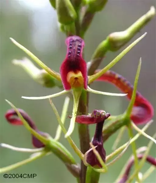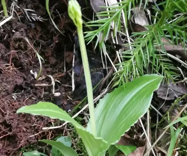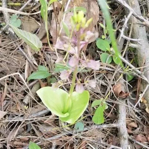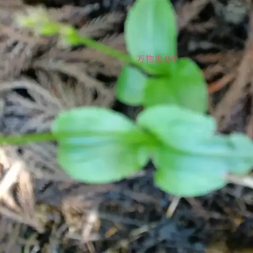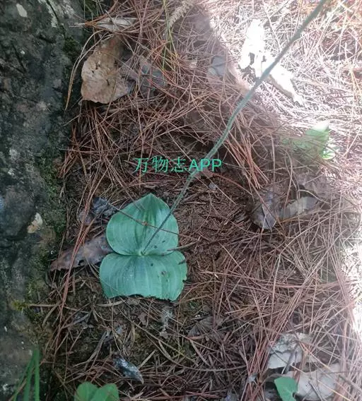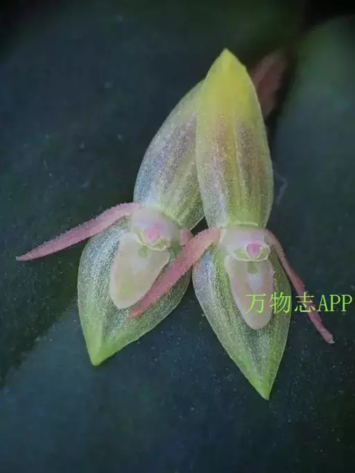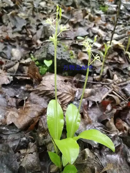 地生草本。假鳞茎卵形,长5-12毫米,直径3-8毫米,外被白色的薄膜质鞘。叶2枚,卵形、卵状长圆形或近椭圆形,膜质或草质,长5-10(-16)厘米,宽2-4(-7)厘米,先端急尖或钝,边缘皱波状或近全缘,基部收狭成鞘状柄,无关节;鞘状柄长3-8厘米,初时抱花葶,果期则多少分离。花葶长12-50厘米;花序柄圆柱形,两侧在花期可见狭翅,果期则翅不明显;总状花序具数朵至10余朵花;花苞片狭卵形,长2-3(-5)毫米;花梗和子房长8-10毫米;花通常淡缘色,有时可变为粉红色或带紫红色;萼片线状披针形,长7-9毫米,宽1.5-2毫米,先端略钝,具3脉;侧萼片稍斜歪;花瓣丝状,长7-9毫米,宽约0.5毫米,具1脉;唇瓣近倒卵形,长6-8毫米,宽4-5毫米,先端具短尖,边缘稍有不明显的细齿或近全缘,基部逐渐变狭;蕊柱长2.5-3.5毫米,上端略有翅,基部扩大。蒴果倒卵状长圆形,长8-13毫米,宽4-6毫米;果梗长5-9毫米。花期6-8月,果期9-10月。