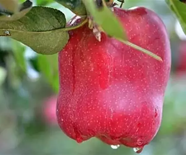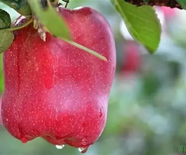 果色浓红。蛇果原产于美国,果型端正,高桩,萼部五棱明显,平均 单果重200g,大者可达500g以上,而且果肉质脆,汁多,味甜,有芳香。