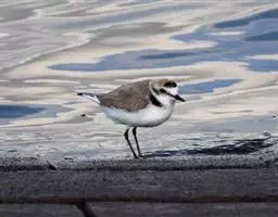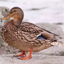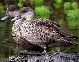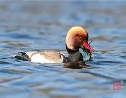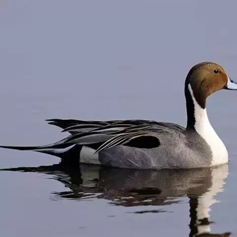 环颈鸭(图3) 双翼,下体侧面浅灰色,胸部鲑鱼色有黑色斑点。有一道黑色宽带纹由头顶延至颈背。雌鸭有橄榄褐色斑点双翼,头部和脸颊有白色条纹,胸部和腹部苍白有斑纹。雌雄都有黑色的尾巴,臀部白色,飞翼上有独特的白色斑,鸭喙灰色,腿和脚粉红色,虹膜棕色。