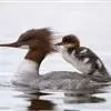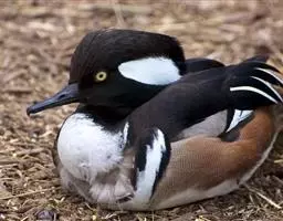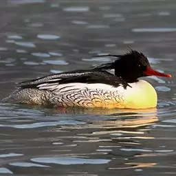 红胸秋沙鸭属中等食鱼鸭类,体长53厘米。嘴细长而带钩,捕食鱼类。丝质冠羽长而尖。雄鸟黑白色,两侧多…