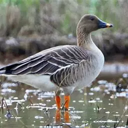 细嘴雁:是雁属中体形大,个体重的鸟类。飞行时双翼拍打用力,振翅频率高。脖子较长。腿位于身体的中心支点,…