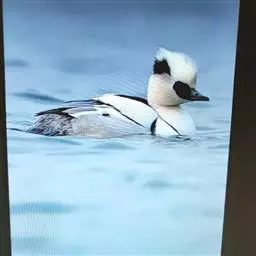 斑头秋沙鸭,是鸭科、斑头秋沙鸭属鸟类。雄鸟眼先和眼周黑色,成块斑状;头部其余部分全为白色。…