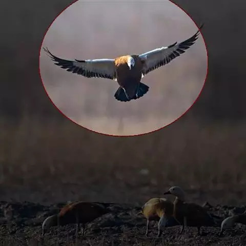 豆雁,雁形目鸭科。成鸟头、颈、背灰褐色,带淡黄色羽缘;尾上覆羽白色,尾羽黑褐色带白端,…