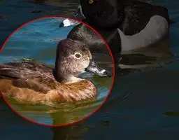 环颈鸭(学名:Callonetta leucophrys)为雁形目鸭科的鸟类。善潜水,活动于湖泊、水库、池塘中,有时也混入其它鸭群活动于浅水处。繁殖在北半球北部的广大地区,对多在冬季末或在春季迁徙的路上形成,以鱼、虾、软体动物和水生昆虫为食,也采食水生植物。