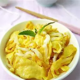 5.下入打散的鸡蛋,用筷子搅散盛出。