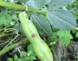 危害特征:蚕豆炭疽病主要危害叶片、茎秆及豆荚,叶片受害初期,表面上散生深红褐色小斑,后扩展为1-3毫米、中间为浅褐色边缘为红褐色的病斑,病斑融合后成大斑块,大小10毫米,病斑圆形至不规则形,多受叶脉限制,病叶很少干枯,后期病斑上产生黑色小点。