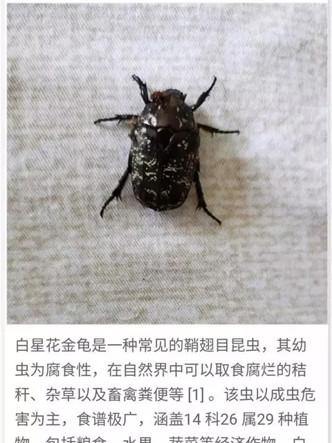 白星花金龟是一种常见的鞘翅目昆虫,其幼虫为腐食性,在自然界中可以取食腐烂的秸秆、杂草以及畜禽粪便等。…