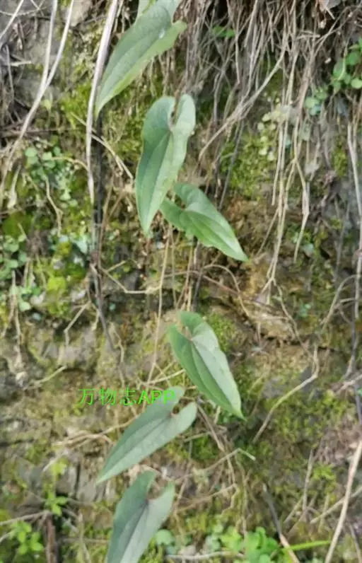 攀缘灌木,根茎块根状,有明显缩节,着生多数须根。茎光滑。单叶互生;革质,披针形至椭圆状极针形,长6~500px,宽1.2~125px,先端渐尖,基部圆形,全缘,下面常被白粉,基出脉3~5条;叶柄长1~50px,略呈翅状,近基部具开展的叶鞘,叶鞘先端常变成2条卷须。花单性,雌雄异株;伞形花序腋生,花序梗极短;小花梗纤细,基部有多数宿存的三角形小苞片;花小,白色,直径约4mm;花被裂片6,2轮;雄花的雄蕊6,花丝较花药短,退化雌蕊缺;雌花的退化雄蕊线形,子房上位,3室,柱头3歧,稍反曲。浆果球形,直径6~8mm,熟时紫黑色。花期7~8月,果期9~10月。 生长于山坡、荒山及林边的半阴地。