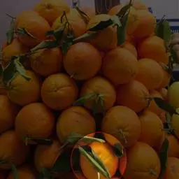 再看看桔皮上面的“油室”,就是看起来有点透明的“小点”,这种“油室”小而多,则口味越好吃。还有稍微按一下,弹性很好,说明很新鲜,汁多味甜。