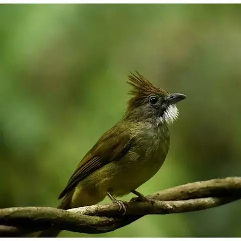 黑冠黄鹎:体长18-21厘米,是一种中等体型偏黄色鹎。整个头、颈、颏、喉黑色,头顶有显著直立的羽冠,…