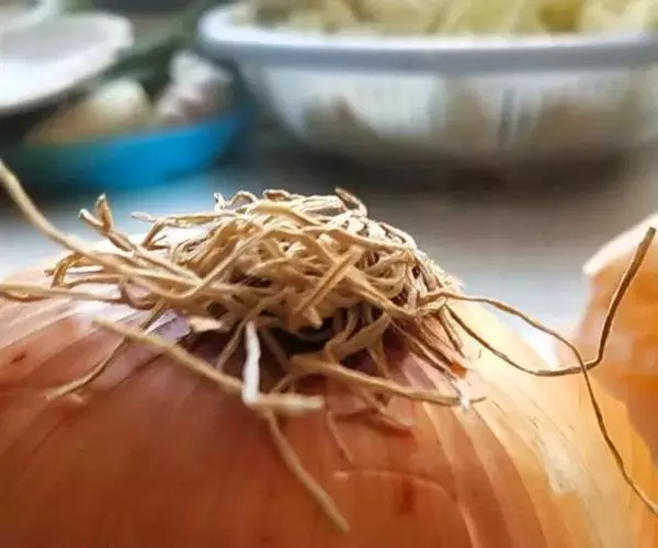 洋葱的胚根入土后不久便会萎缩,因而没有主根,其根为弦状须根,着生于短缩茎盘的基部,根系较弱,无根毛,根系主要密集分布在20cm的表土层中,故耐旱性较弱,吸收肥水能力能力较弱。根系生长温度较地上低,地温5摄氏度时,根系即开始生长,10~15摄氏度最适,24~25摄氏度时生长缓慢。