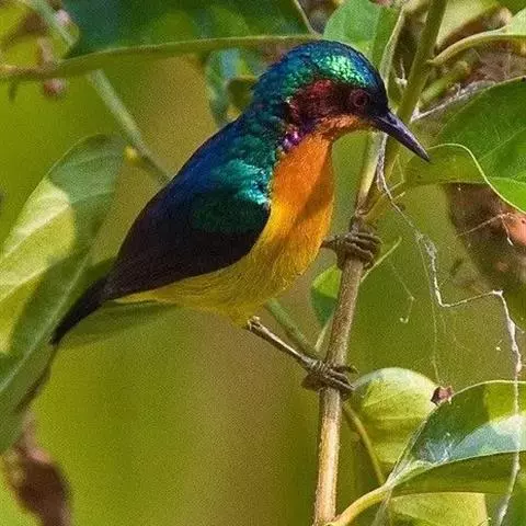 纹背捕蛛鸟:为太阳鸟科捕蛛鸟属的鸟类。是太阳鸟科中体型较大的一种,体重25-45克,…